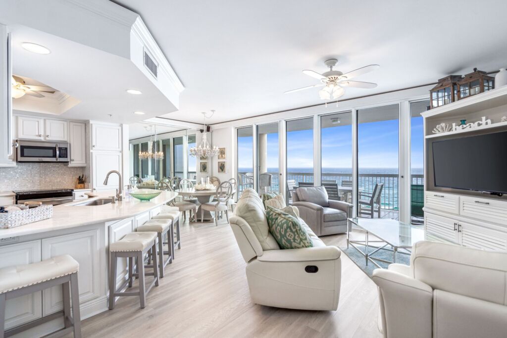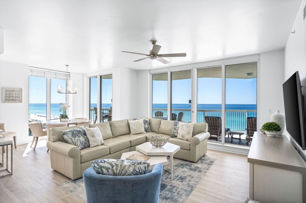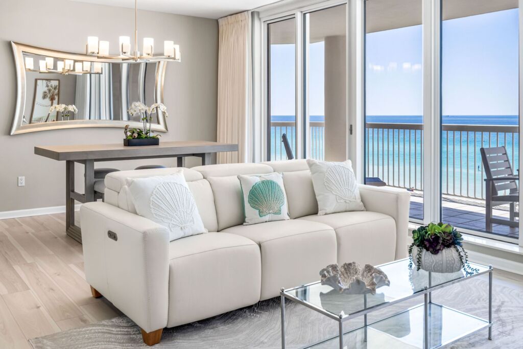 Choose to vacation in our 8th story, 3-bedroom, 3-bathroom beachfront condo. This property features bright views, comfortable contemporary coastal furniture, and has received more than 50 five-star reviews for it’s beauty and convenience.